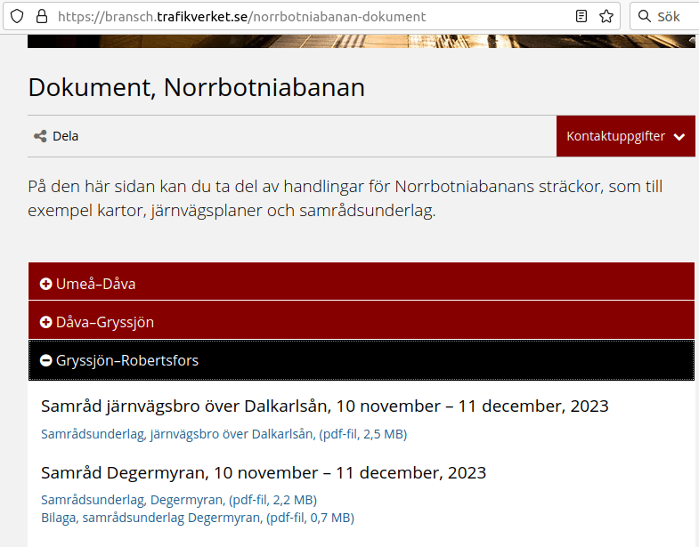 - Undersida med alla dokument: https://bransch.trafikverket.se/norrbotniabanan-dokument,